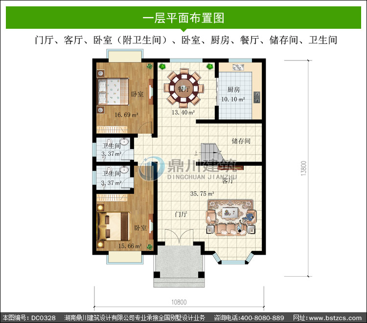 | 一 層: | 門廳、客廳、臥室(附衛(wèi)生間)、臥室、廚房、餐廳、儲(chǔ)存間、衛(wèi)生間 | |||