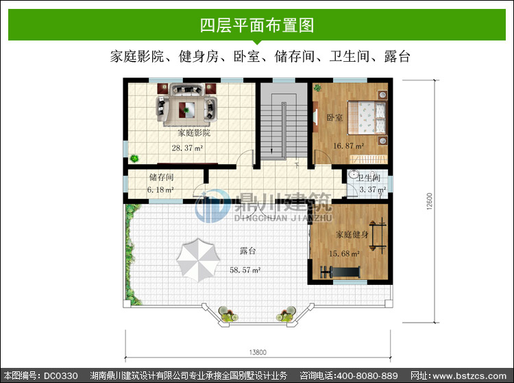| 四 層: | 家庭影院、健身房、臥室、儲(chǔ)存間、衛(wèi)生間、露臺(tái) | |||