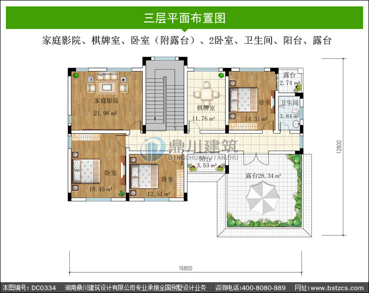 | 三 層: | 家庭影院、棋牌室、臥室(附露臺)、2臥室、衛生間、陽臺、露臺 | |||