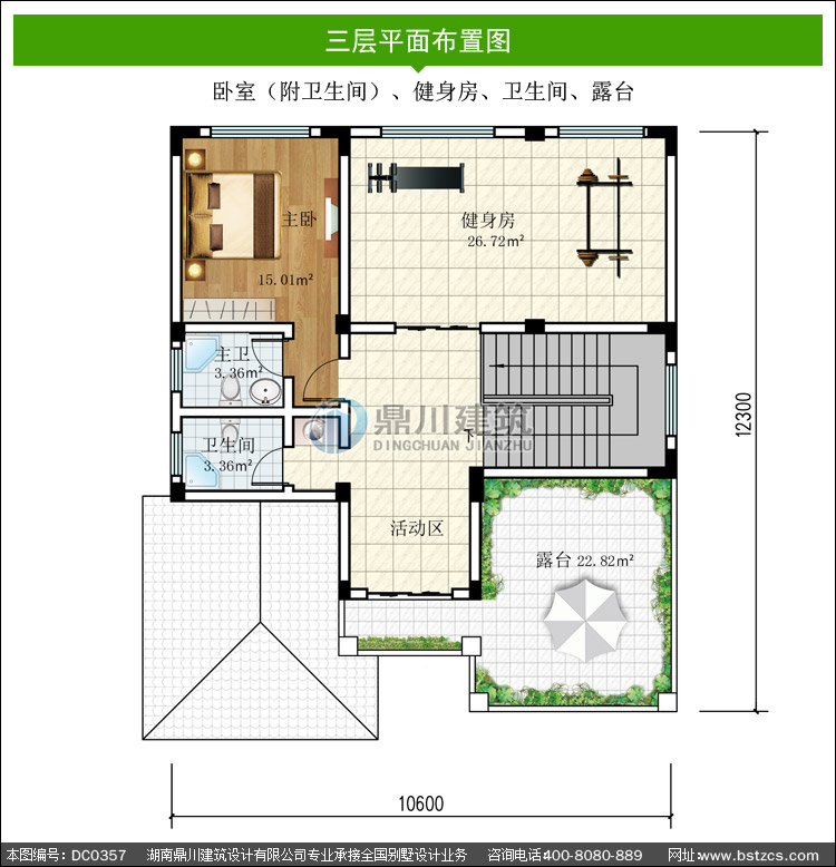 | 三 層: | 臥室(附衛生間)、健身房、衛生間、露臺 | |||
