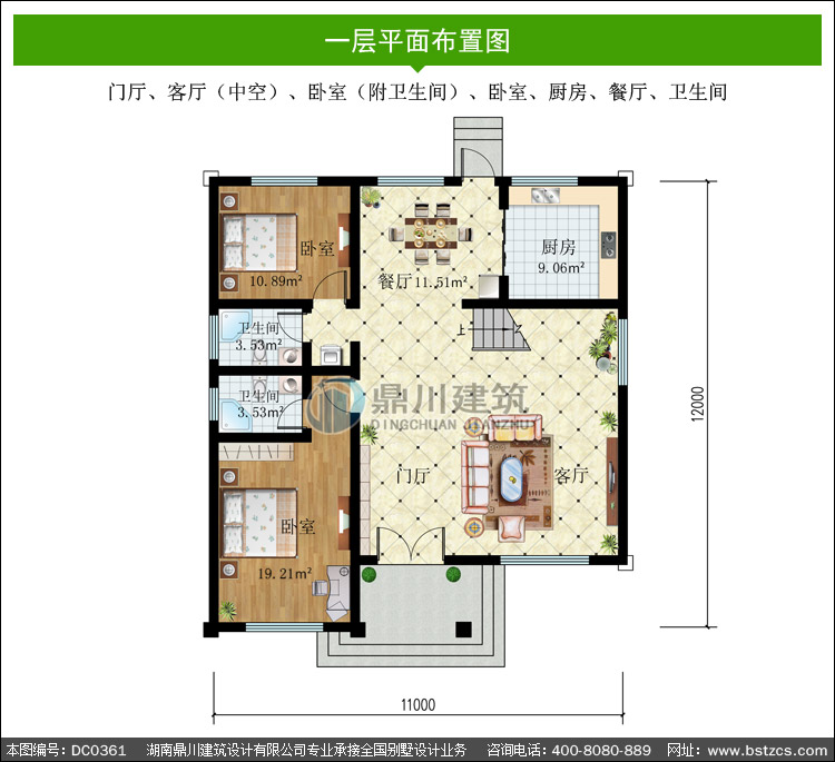 | 一 層: | 門廳、客廳(中空)、臥室(附衛生間)、臥室、廚房、餐廳、衛生間 | |||