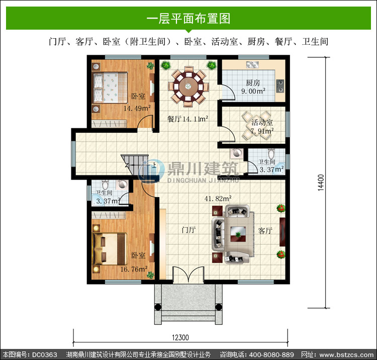 | 開間: 12.3米 | 進深: 14.4米 | 占地面積: 164.28平方米 | 建筑面積: 468.69平方米 |