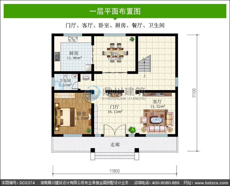 | 一 層: | 門廳、客廳、臥室、廚房、餐廳、衛生間 | |||