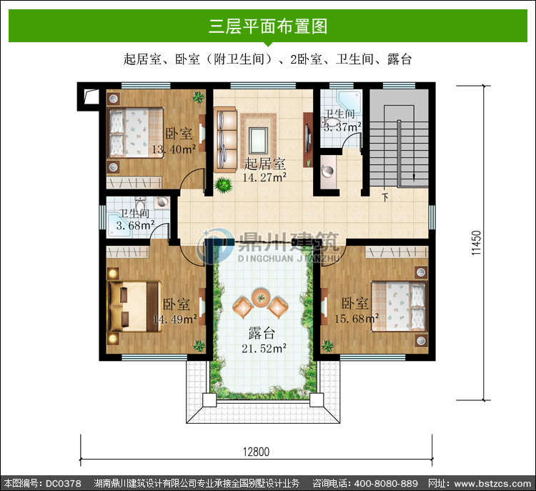 | 開間: 12.8米 | 進深: 11.45米 | 占地面積: 132.73平方米 | 建筑面積: 405.84平方米 |