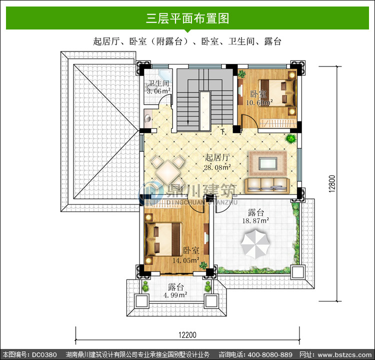 | 三 層: | 起居廳、臥室(附露臺)、臥室、衛(wèi)生間、露臺 | |||