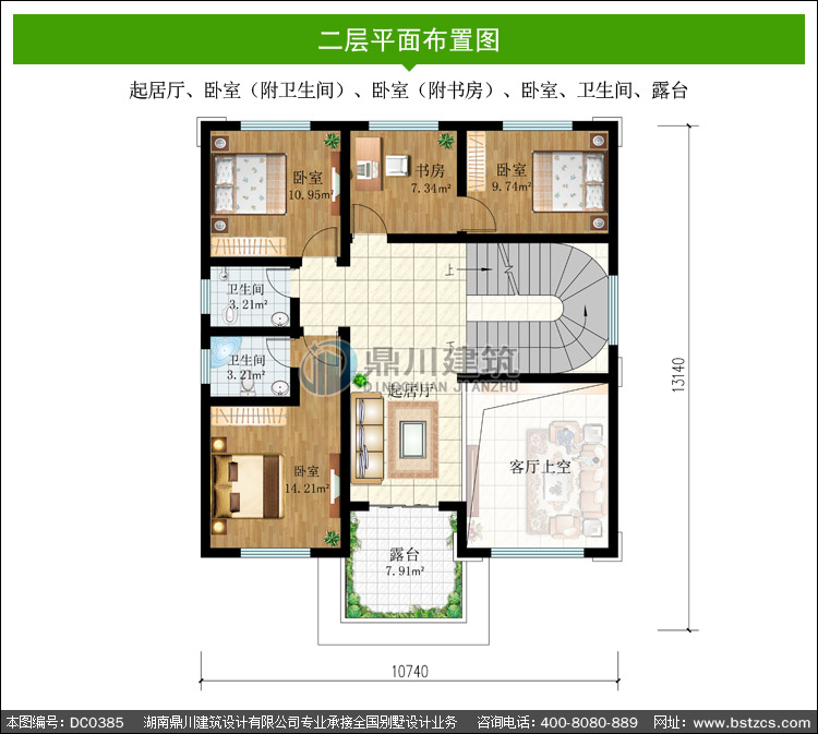 | 二 層: | 起居廳、臥室(附衛生間)、臥室(附書房)、臥室、衛生間、露臺 | |||