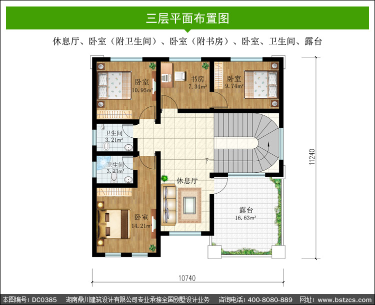 | 三 層: | 休息廳、臥室(附衛生間)、臥室(附書房)、臥室、衛生間、露臺 | |||