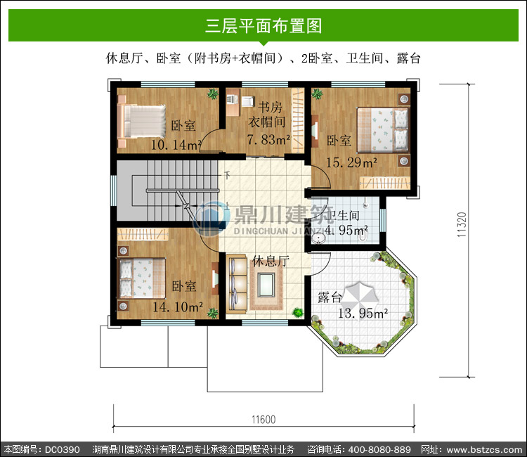 | 三 層: | 休息廳、臥室(附書(shū)房+衣帽間)、2臥室、衛(wèi)生間、露臺(tái) | |||