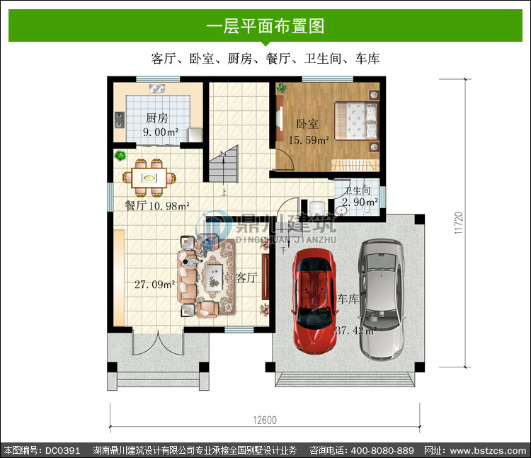 | 一 層: | 客廳、臥室、廚房、餐廳、衛(wèi)生間、車庫 | |||