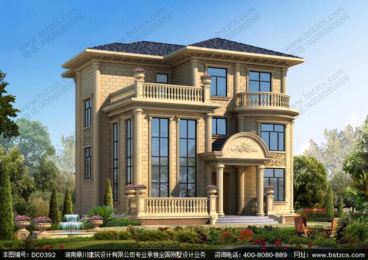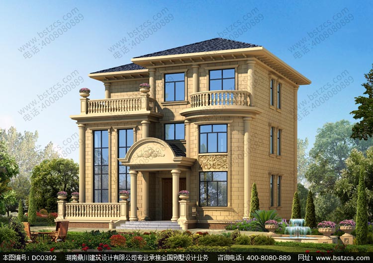 復式三層豪華歐式別墅外觀效果圖及施工圖_三層別墅設計圖紙,鼎川建筑