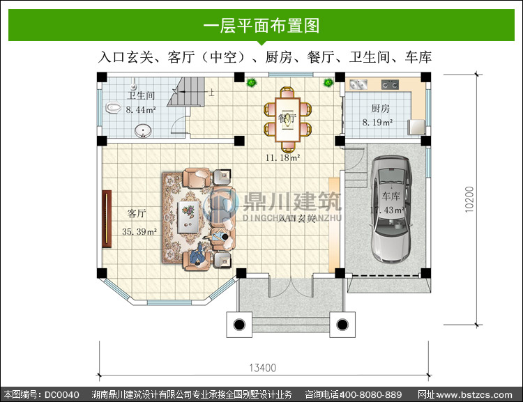 | 一 層: | 入口玄關(guān)、客廳(中空)、廚房、餐廳、衛(wèi)生間、車庫 | |||