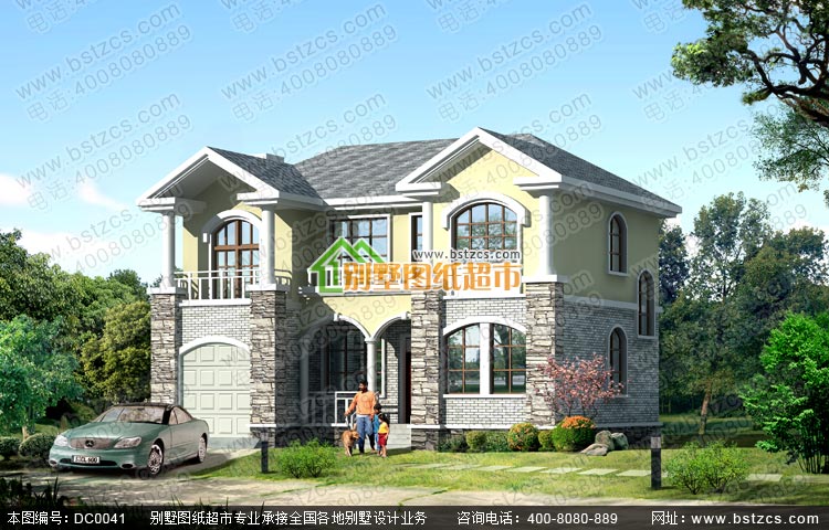 二層帶走廊別墅設計施工圖及效果圖_別墅圖紙超市,鼎川建筑