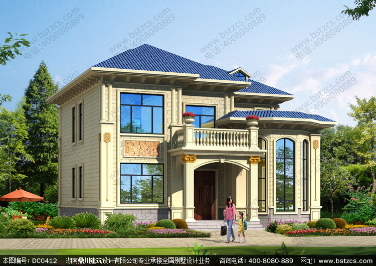漂亮的二層帶露臺歐式小別墅設計圖紙_農村兩層別墅設計,鼎川建筑