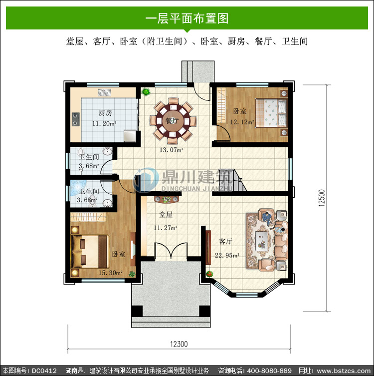 | 編號: DC0412 | 層數: 二層 | 結構形式: 磚混結構 | 主體造價: 32-42萬 |