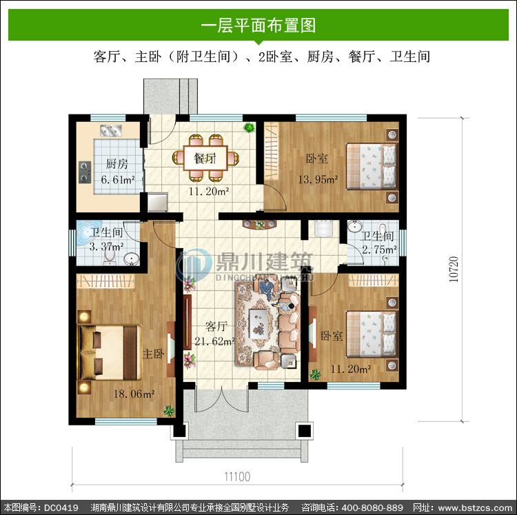 農村一層自建別墅設計圖紙及效果圖_農村平房別墅圖紙,鼎川建筑