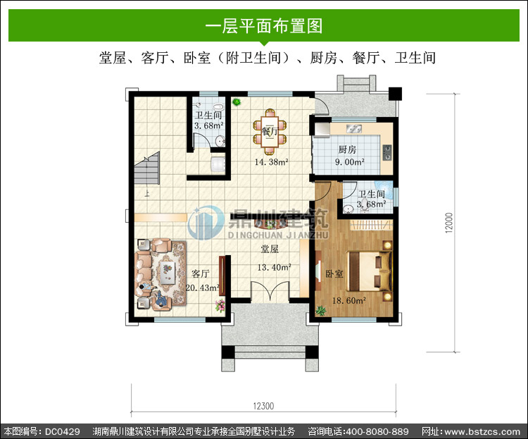 | 一 層: | 堂屋、客廳、臥室(附衛生間)、廚房、餐廳、衛生間 | |||