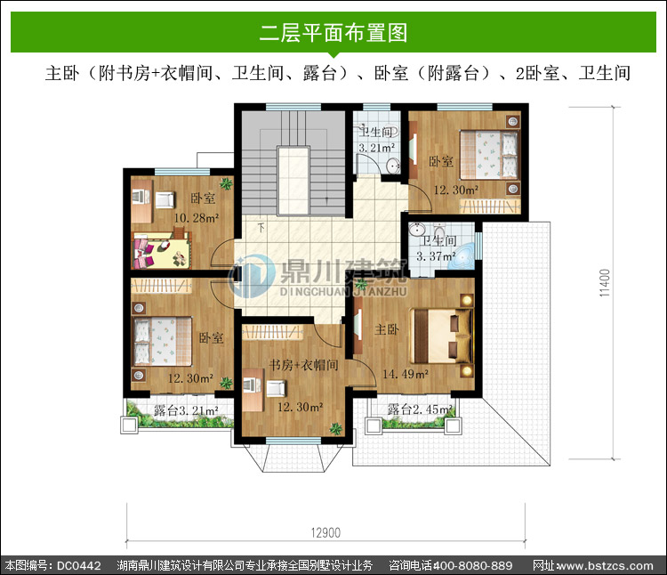 | 二 層: | 主臥(附書房+衣帽間、衛生間、露臺)、臥室(附露臺) 、2臥室、衛生間 | |||