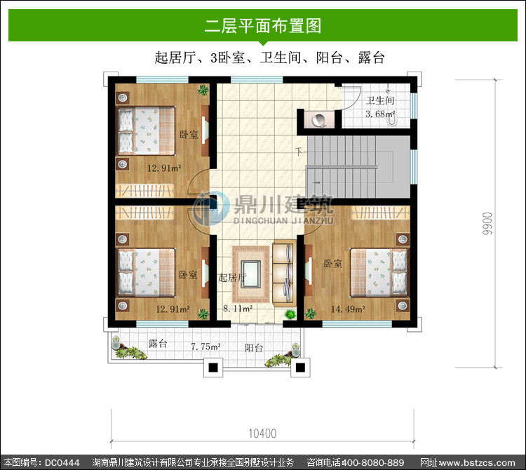 | 二 層: | 起居廳、3臥室、衛(wèi)生間、陽(yáng)臺(tái)、露臺(tái) | |||