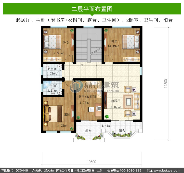 | 二 層: | 起居廳、主臥(附書房+衣帽間、露臺、衛生間)、2臥室、衛生間、陽臺 | |||