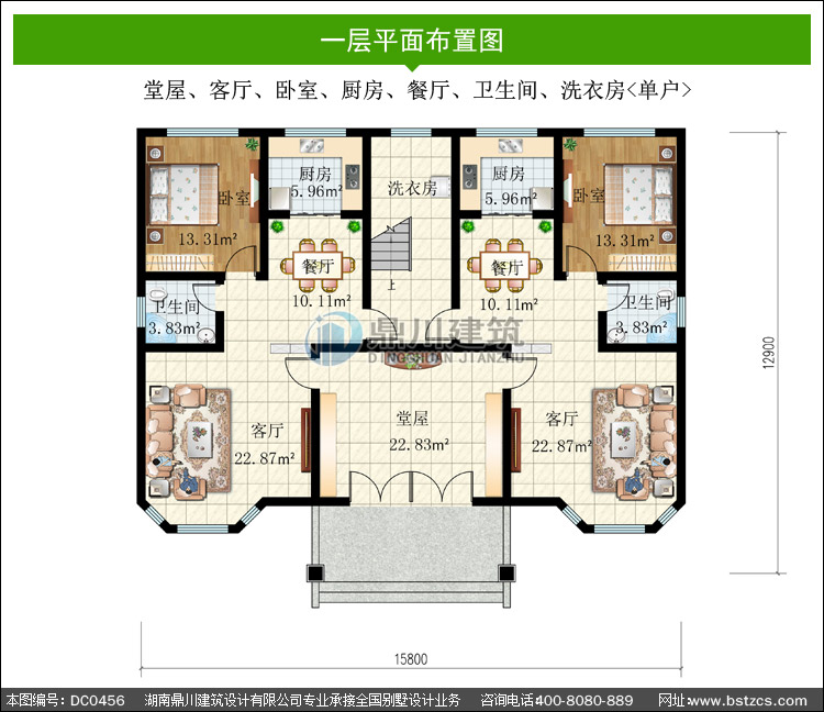 三層共堂屋雙拼別墅設計圖紙_農村雙拼別墅圖紙,鼎川建筑