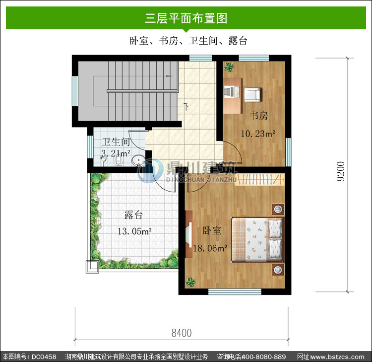 | 三 層: | 臥室、書(shū)房、衛(wèi)生間、露臺(tái) | |||