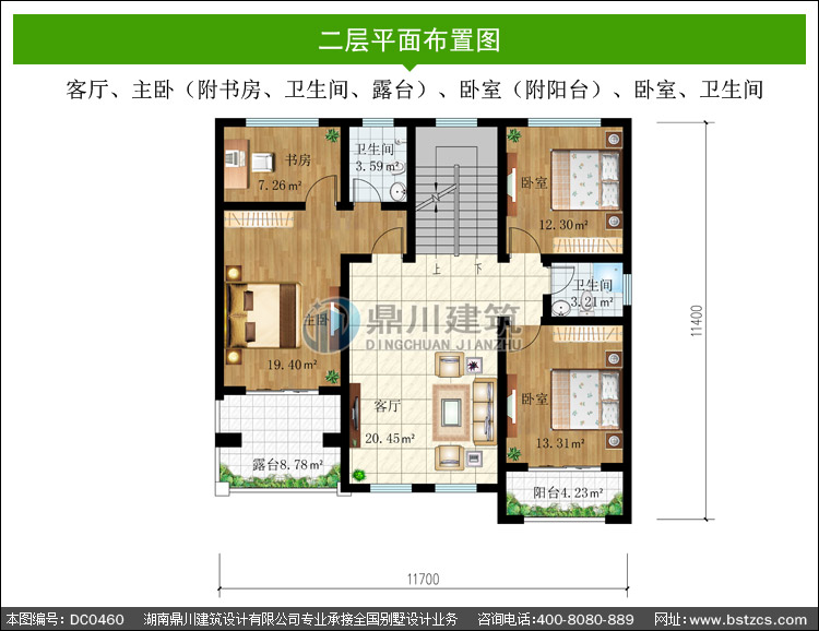 | 二 層: | 客廳、主臥(附書房、衛(wèi)生間、露臺(tái))、臥室(附陽(yáng)臺(tái))、臥室、衛(wèi)生間 | |||