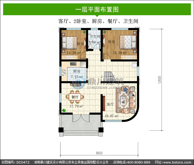 | 一 層: | 客廳、2臥室、廚房、餐廳、衛(wèi)生間 | |||
