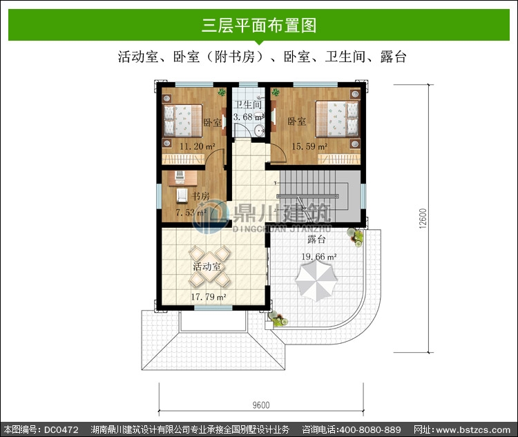 | 三 層: | 活動室、臥室(附書房)、臥室、衛(wèi)生間、露臺 | |||
