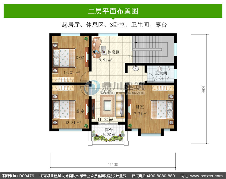 | 二 層: | 起居廳、休息區(qū)、3臥室、衛(wèi)生間、露臺 | |||