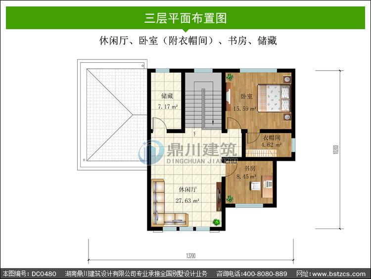 | 三 層: | 休閑廳、臥室(附衣帽間)、書房、儲(chǔ)藏 | |||