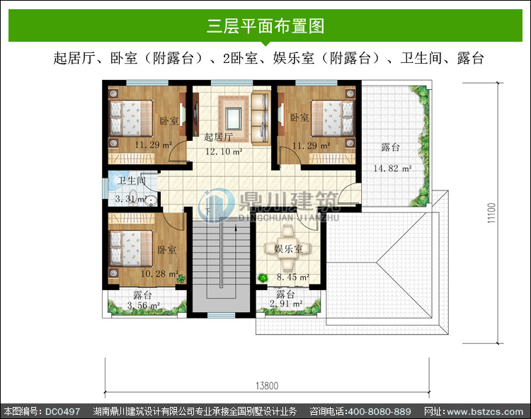 新農村三層帶檐廊自建房小別墅設計圖紙_農村三層別墅設計,鼎川