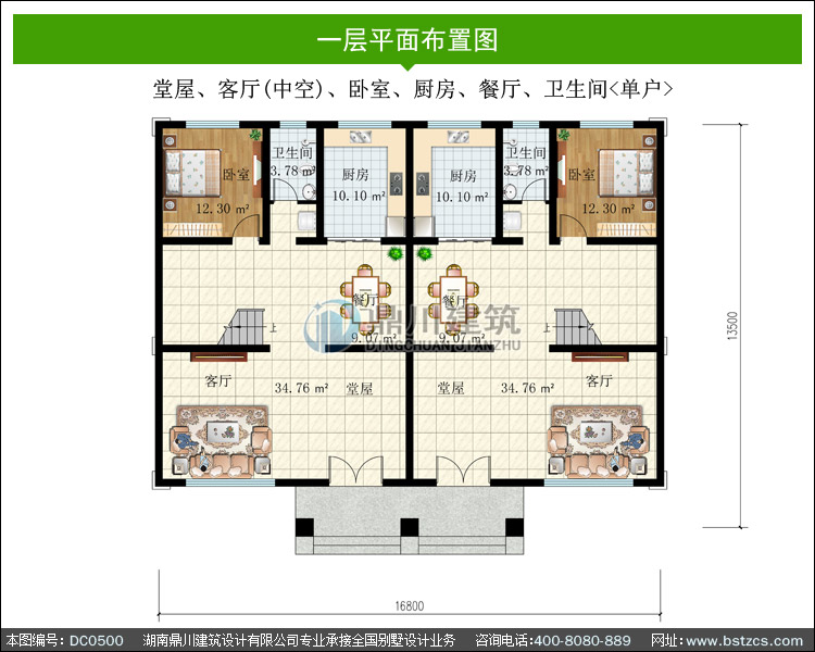 三層共堂屋雙拼別墅設計圖紙_農村雙拼別墅圖紙,鼎川建筑