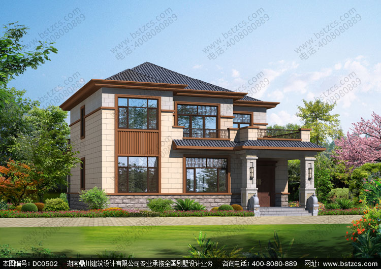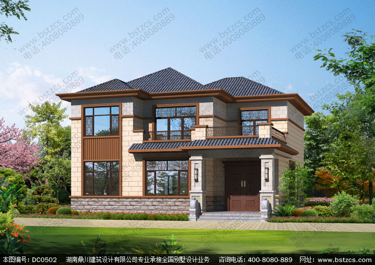 農村新中式二層帶露臺小別墅設計圖紙_農村兩層自建房設計,鼎川建筑