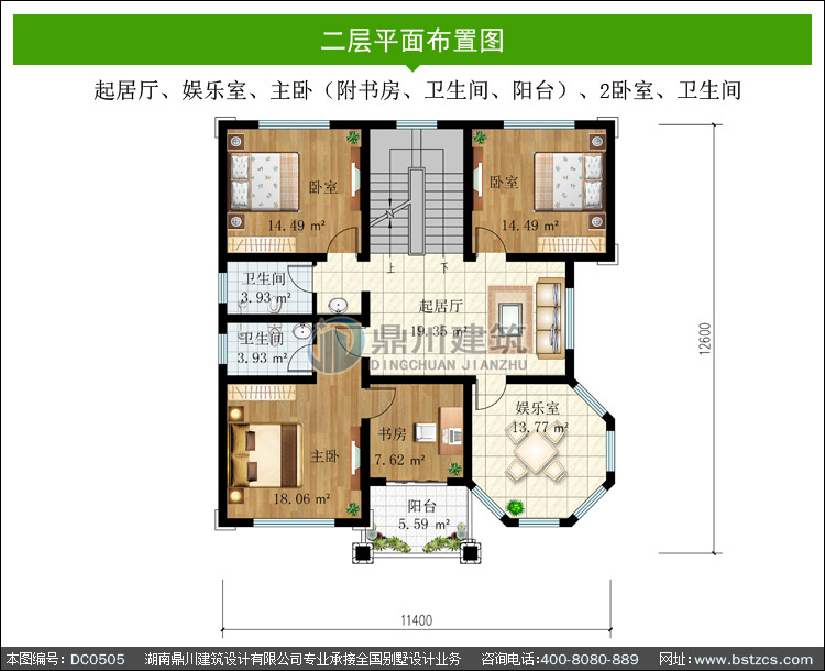 | 二 層: | 起居廳、娛樂室、主臥(附書房、衛生間、陽臺)、2臥室、衛生間 | |||