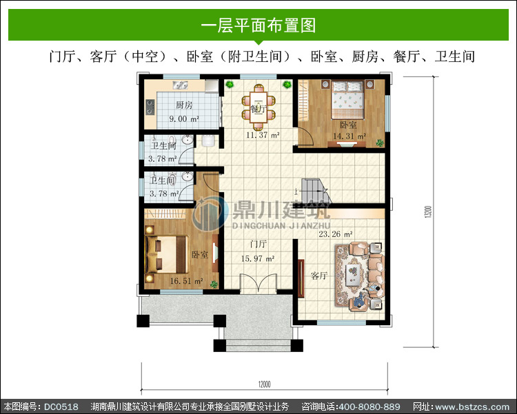 | 開間: 12米 | 進(jìn)深: 13.2米 | 占地面積: 146.91平方米 | 建筑面積: 423.21平方米 |