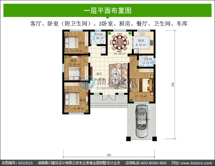 | 編號: DC0523 | 層數: 一層 | 結構形式: 磚混結構 | 主體造價: 18-25萬 |