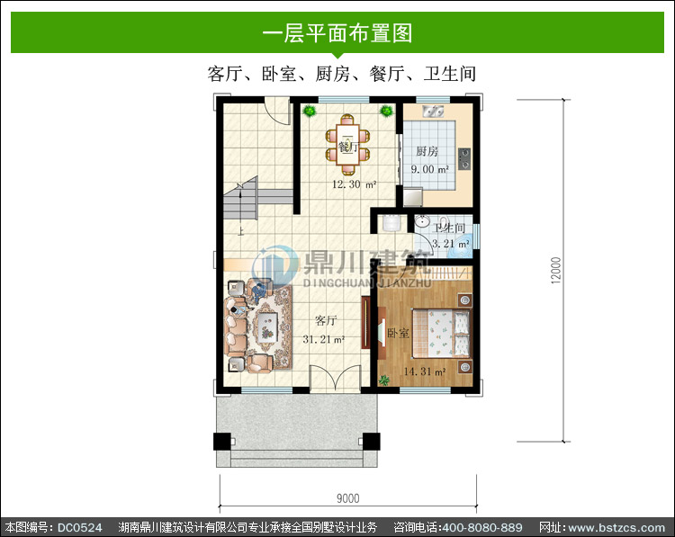 | 一 層: | 客廳、臥室、廚房、餐廳、衛生間 | |||