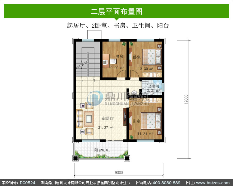 | 開間: 9米 | 進深: 12米 | 占地面積: 111.01平方米 | 建筑面積: 288.44平方米 |