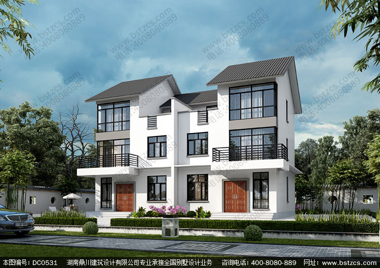 三層實用型雙拼別墅效果圖及施工圖_鼎川建筑,鼎川別墅圖紙