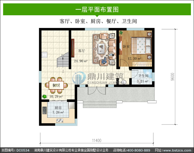 | 一 層: | 客廳、臥室、廚房、餐廳、衛生間 | |||