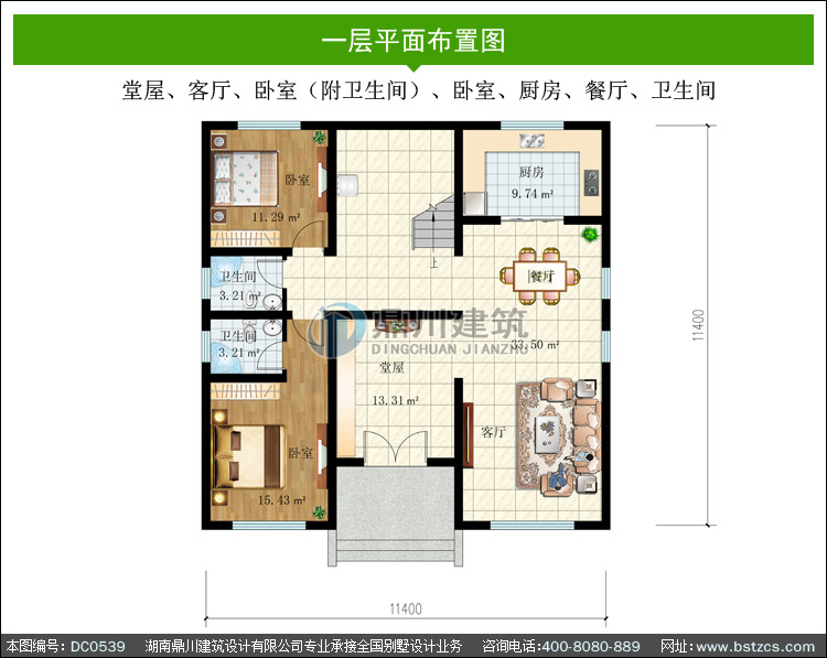 | 開間: 11.4米 | 進深: 11.4米 | 占地面積: 132.47平方米 | 建筑面積: 225.14平方米 |