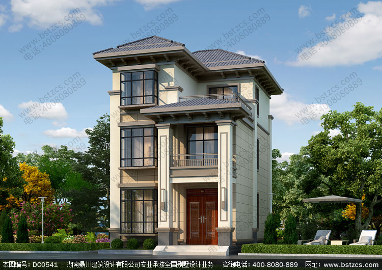 三層帶露臺中式小戶型別墅設計圖紙_農村三層別墅圖紙,鼎川建筑