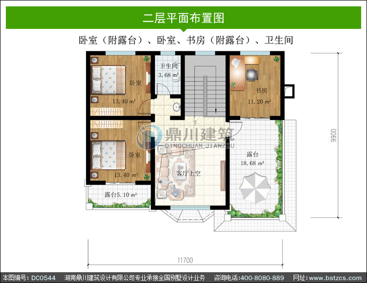 農村復式二層帶露臺小別墅設計圖紙_農村兩層自建房設計,鼎川建筑