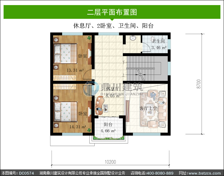 | 二 層: | 休息廳、2臥室、衛生間、陽臺 | |||