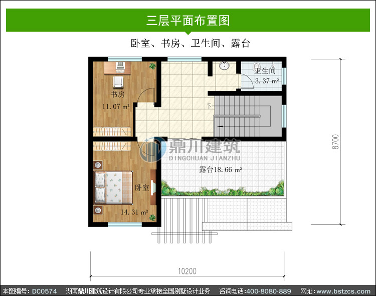 | 三 層: | 臥室、書房、衛生間、露臺 | |||