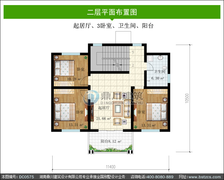 | 二 層: | 起居廳、3臥室、衛(wèi)生間、陽臺 | |||