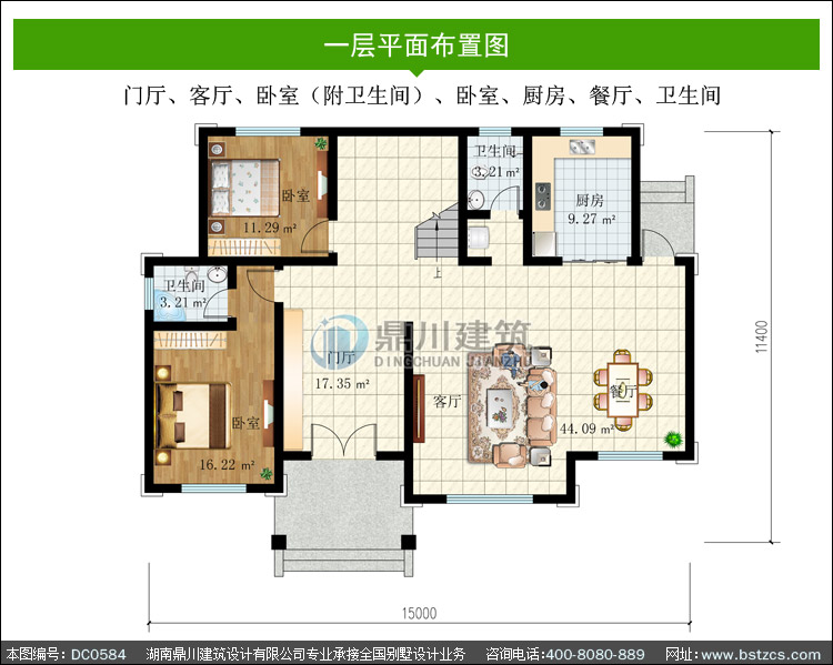 | 開間: 15米 | 進深: 11.4米 | 占地面積: 150.60平方米 | 建筑面積: 356.55平方米 |