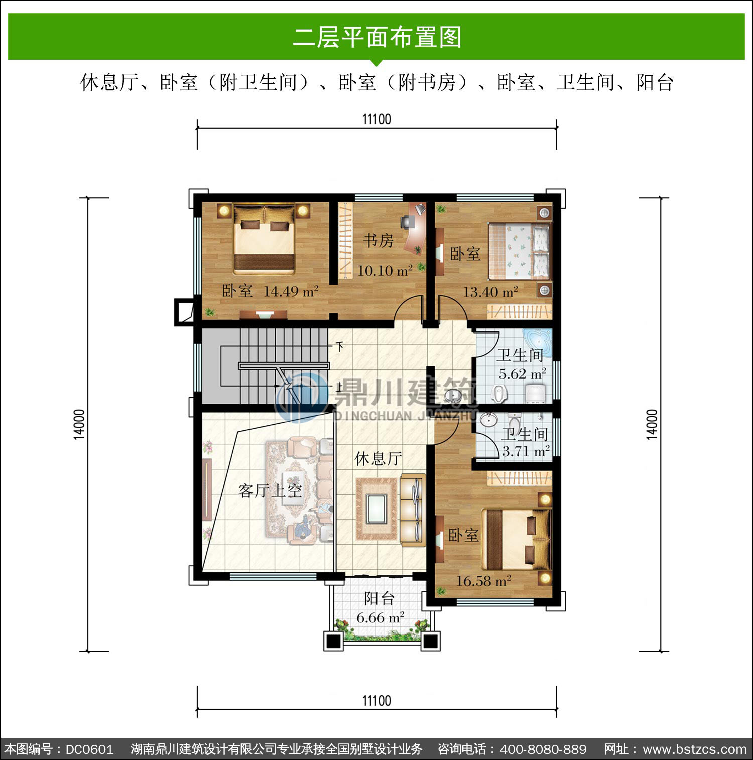 | 二 層: | 休息廳、臥室(附衛生間)、臥室(附書房)、臥室、衛生間、陽臺 | |||