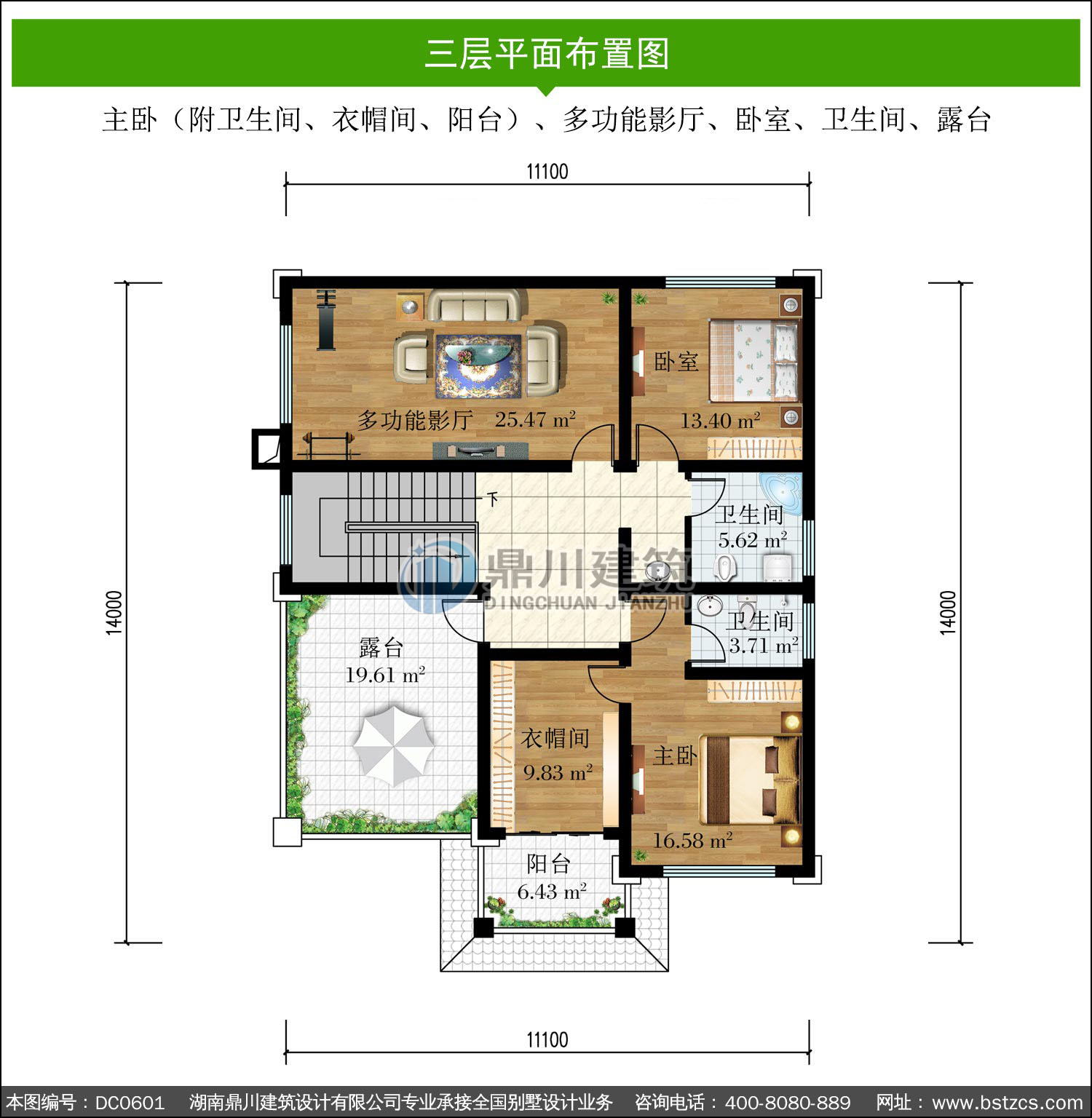 新農村復式三層帶露臺別墅設計圖紙_農村自建房設計圖,鼎川別墅