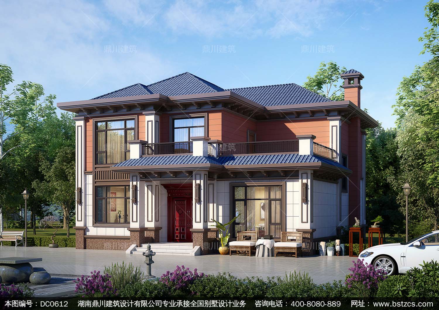 農村新中式二層帶露臺小別墅設計圖紙_農村兩層自建房設計,鼎川